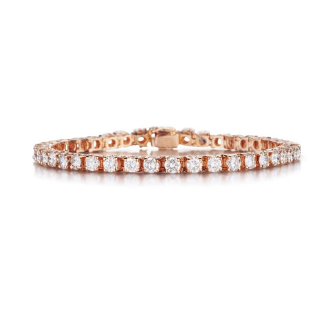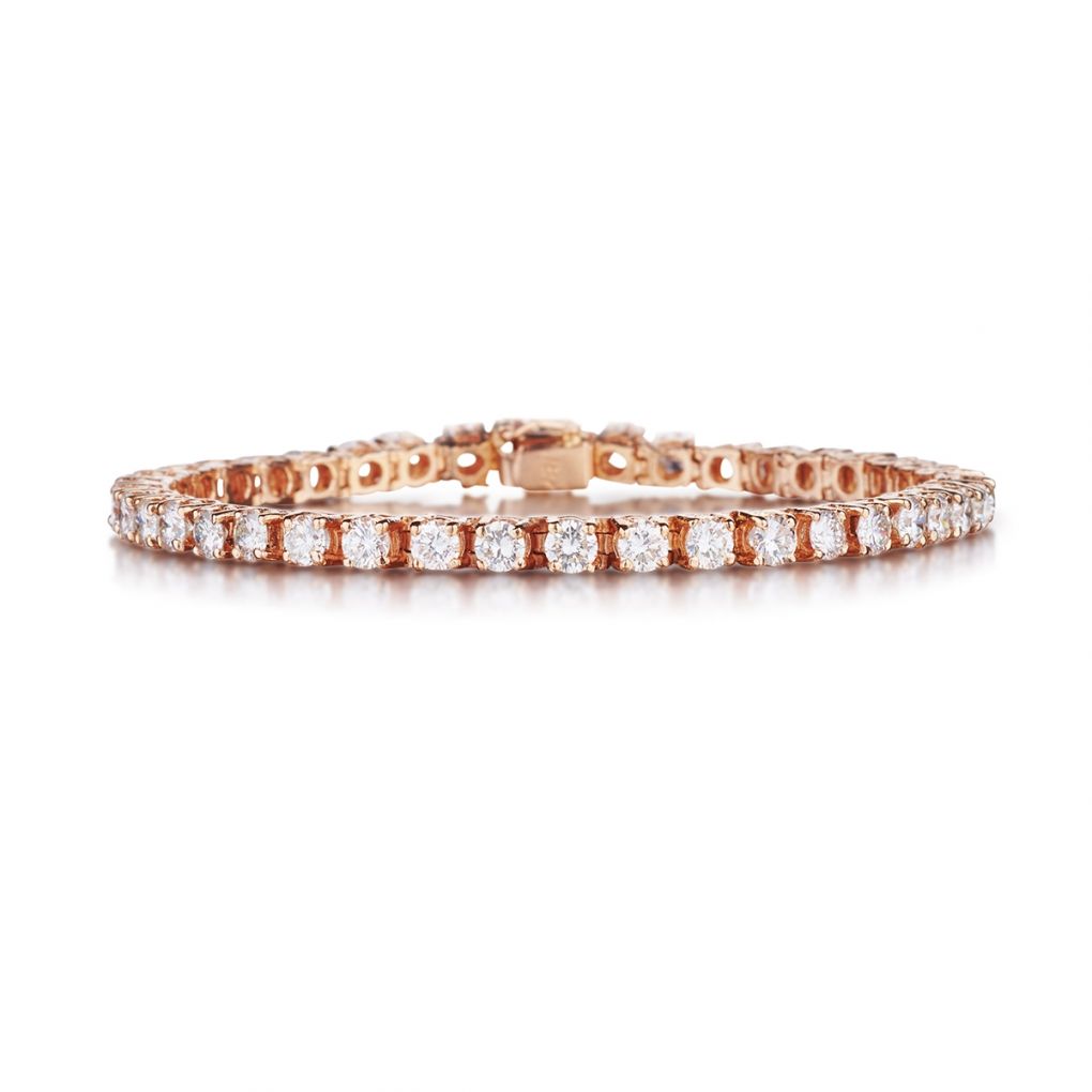 Ladies 18KT rose gold classic diamond tennis bracelet featuring (40) Round Brilliant-cut diamonds weighing approximately 7.00 carat total weight of (SI) in clarity and (G) in color. Approximately 7 1/2 inches in length.