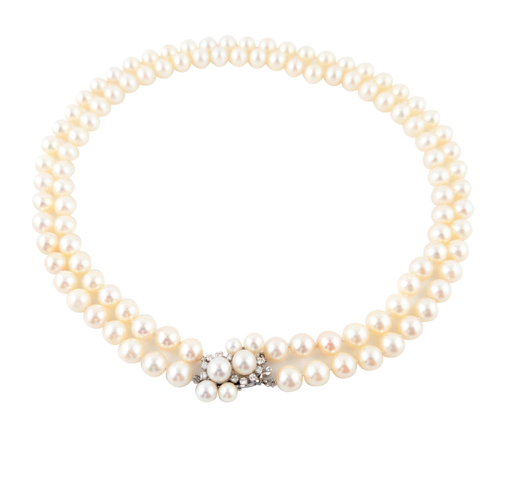 • 7mm Double Pearl Strand with Diamond and Pearl Clasp