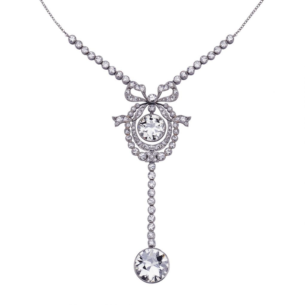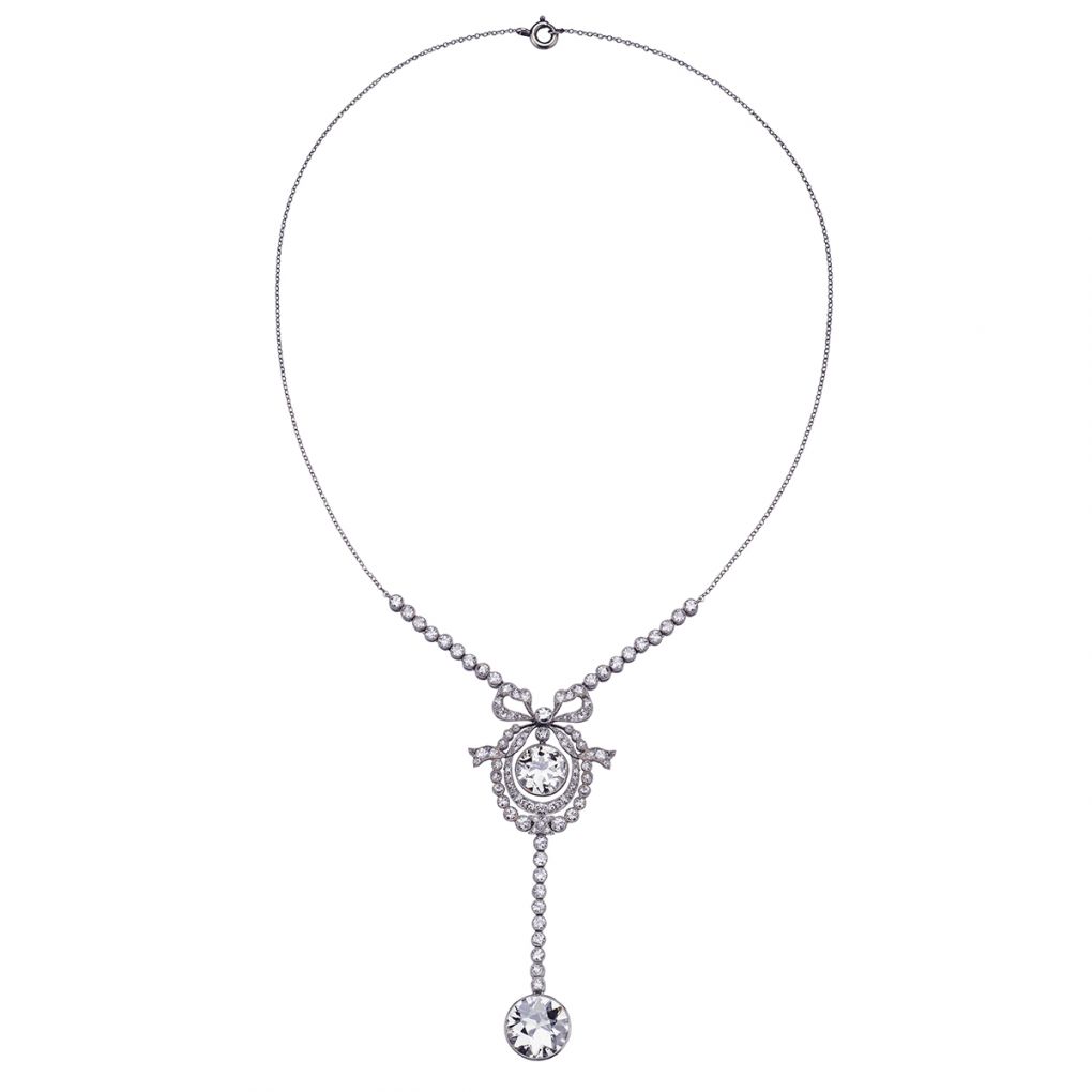 • Edwardian Old-European Cut Diamond Drop Necklace