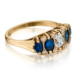 • Ladies 14kt Diamond and Blue Sapphire Ring. Edwardian Era.
