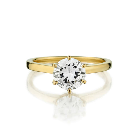 Ladies 18kt Y/G 6 Claw Solitaire Ring Featuring a 1.08ct Brilliant Cut Diamond