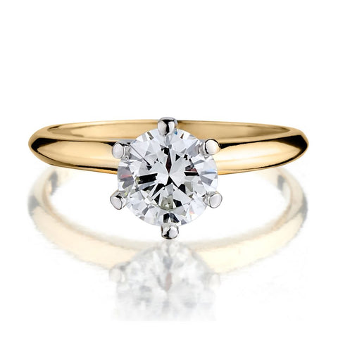 Ladies 18kt Yellow Gold and Platinum diamond solitaire ring featuring a Brilliant cut diamond weighing 1.15ct carat weight of (VS) in clarity and (H-I) in color. 6 Claw Platinum setting. Current size 7. This ring can be resized.