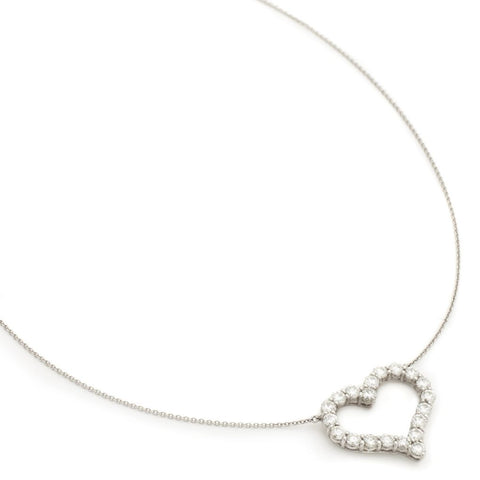 Ladies platinum Tiffany & Co. large diamond heart pendant from the Tiffany Hearts™ Pendant Collection. The pendant is accented with 1.96 carat total weight of Round Brilliant-cut diamonds. Featured on a 16" Tiffany & Co. platinum chain.