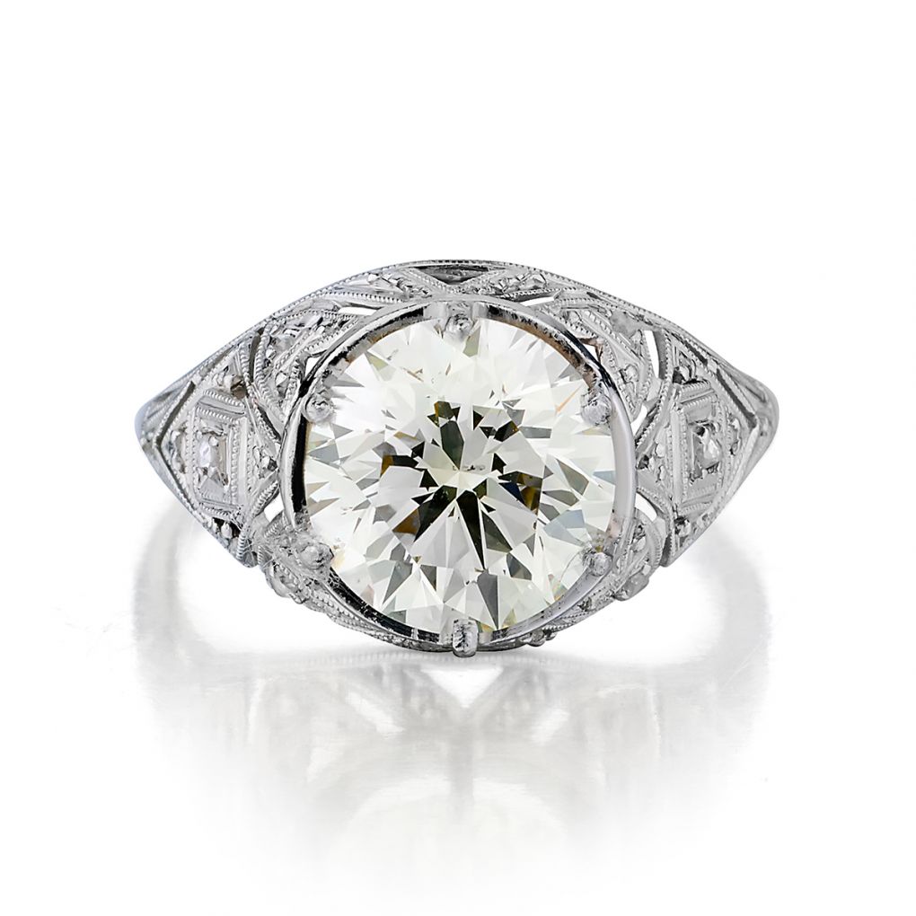 • Ladies Vintage Platinum Diamond Ring. 3.25ct European cut.