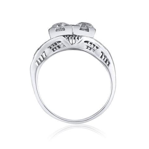 Ladies Vintage 18kt White Gold Diamond Ring. 2 x 1.20ct Tw European Cut Diamonds