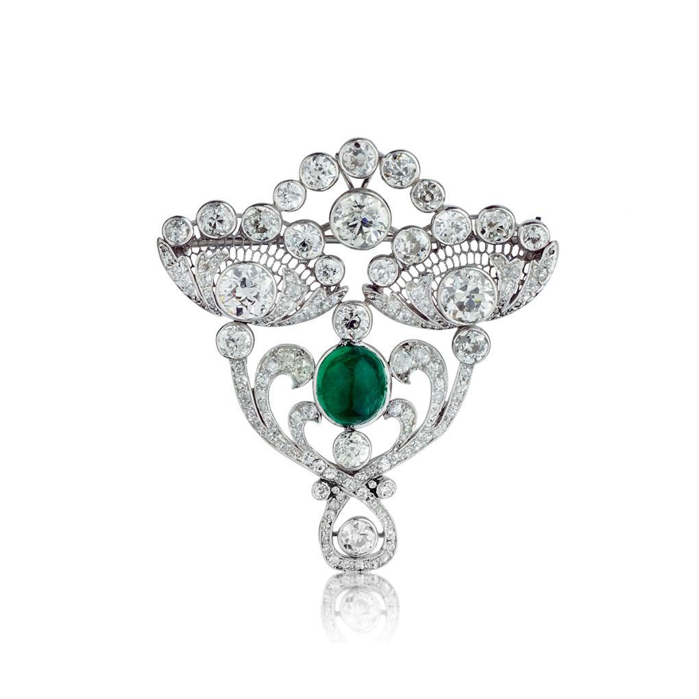 • Mid-Century Large Rose Gold Floral Enamel And Diamond Brooch