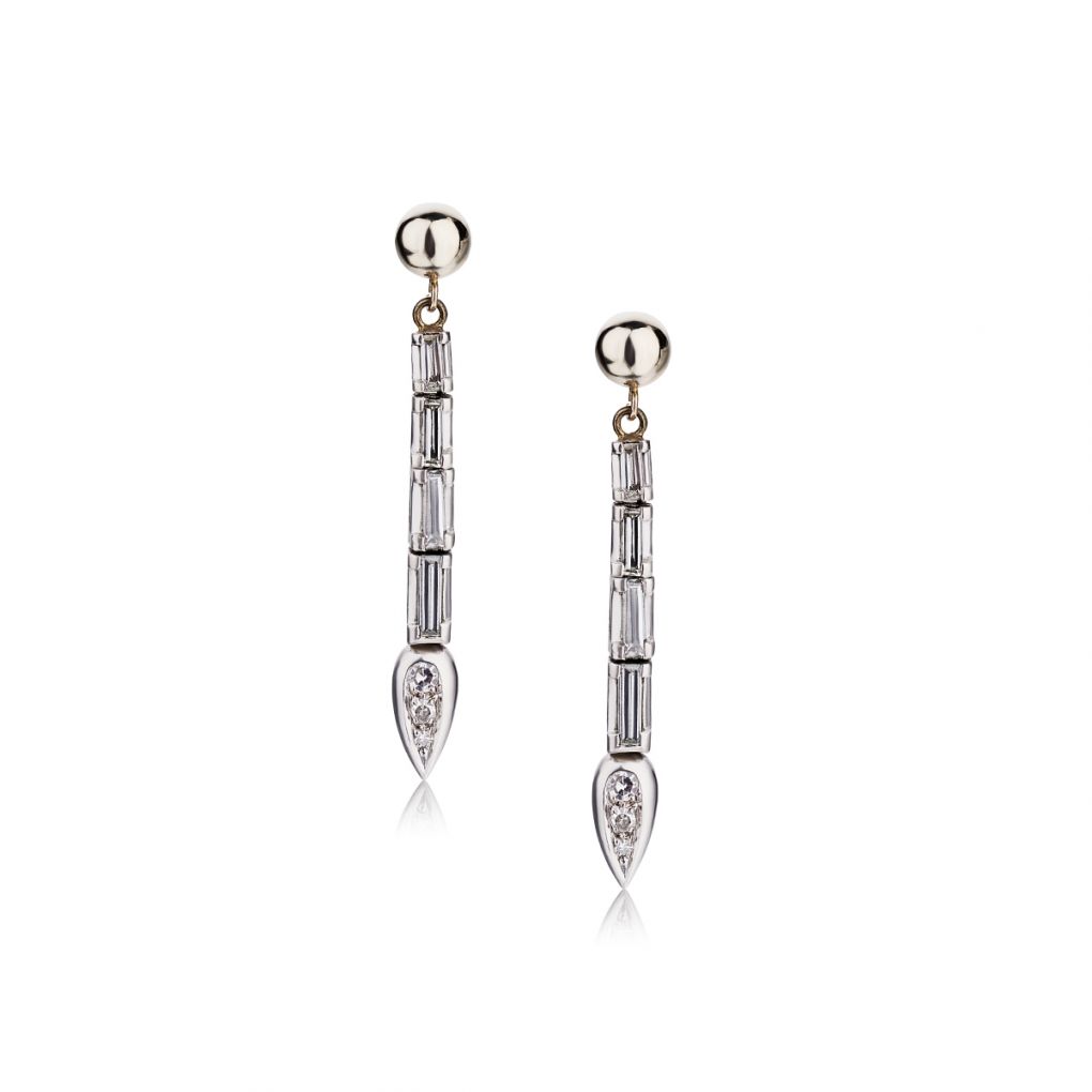 • Mid-Century Platinum Baguette Cut And Old-Single Cut DIamond Drop Earrings