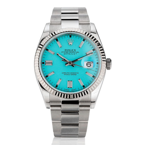 ROLEX Datejust stainless steel, custom torquoise dial . 36mm