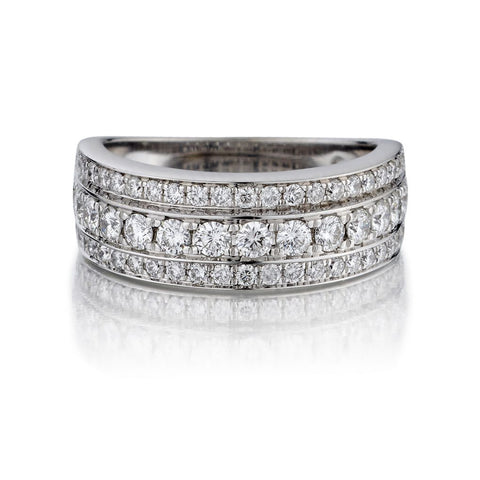 Three Row 1.10 Carat Total Weight Round Brilliant Cut Diamond Band