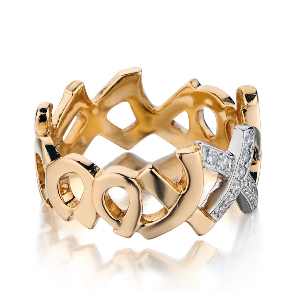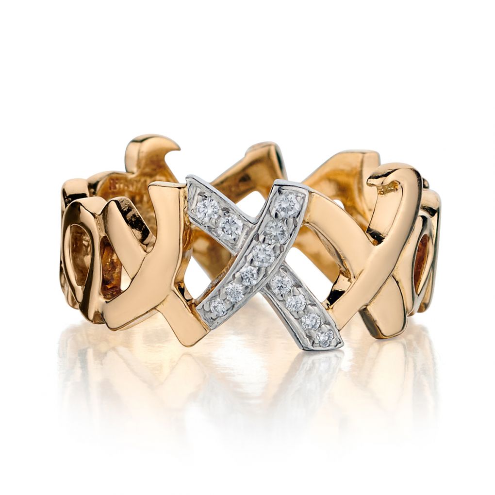 Tiffany & Co Love and Kisses Graffiti ring in 18kt yellow gold. Circa 1984