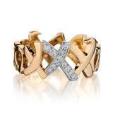 Tiffany & Co Ladies "Graffiti Love and Kisses" ring in 18kt yellow gold with diamonds . Paloma Picasso.Width 9mm. Size 5-1/2. This ring cannot be sized.