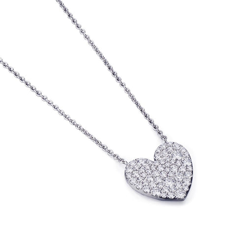 Ladies chic and feminine 18kt white gold Tiffany & Co. floating heart necklace from the Metro collection. The heart is pave-set with 0.56 carat total weight of Round Brilliant cut diamonds and measures 14.1mm x 13.6mm. The pendant can also be worn on the other side to display only a white gold heart. Featured on an 18kt white gold Tiffany and Company 16" chain.