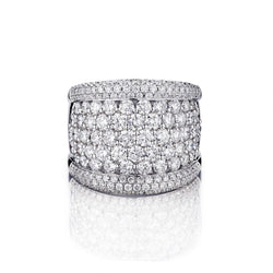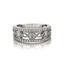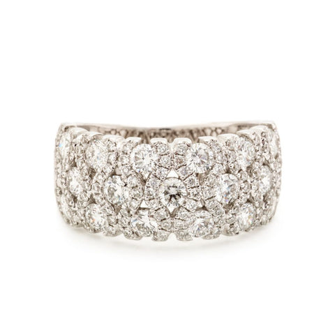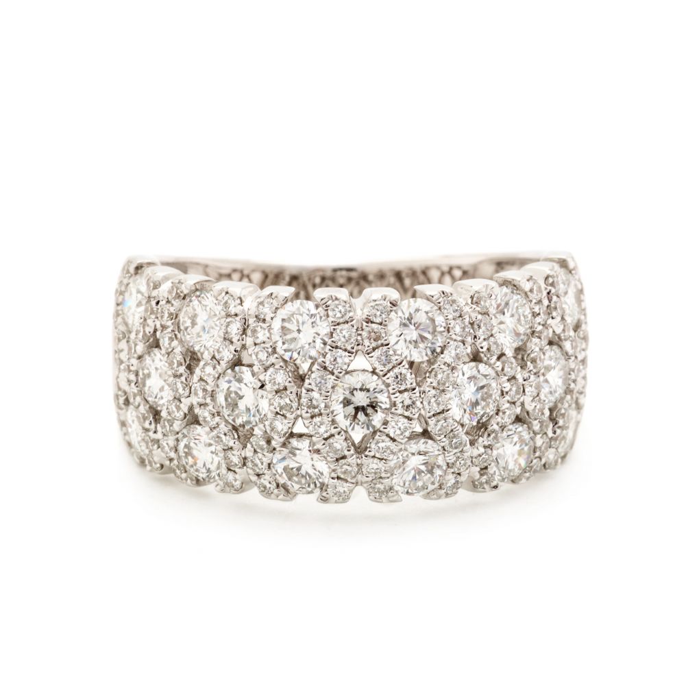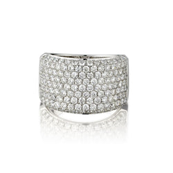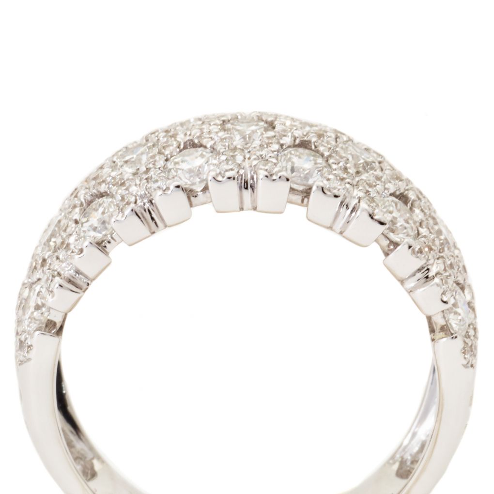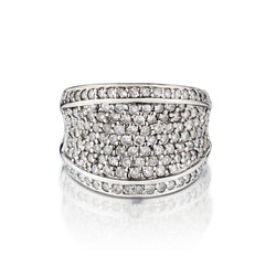 Ladies beautiful and unique 18kt white gold diamond band set with approximately 2.00 carat total weight of round brilliant cut diamonds of (VS) in clarity and (G-H) in color. Diamonds are claw set as well as pavé set.