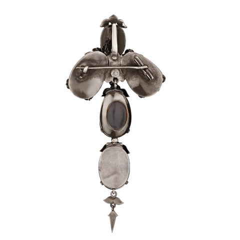 • Victorian Cabachon Garnet Silver Brooch/Pendant. Circa 1840