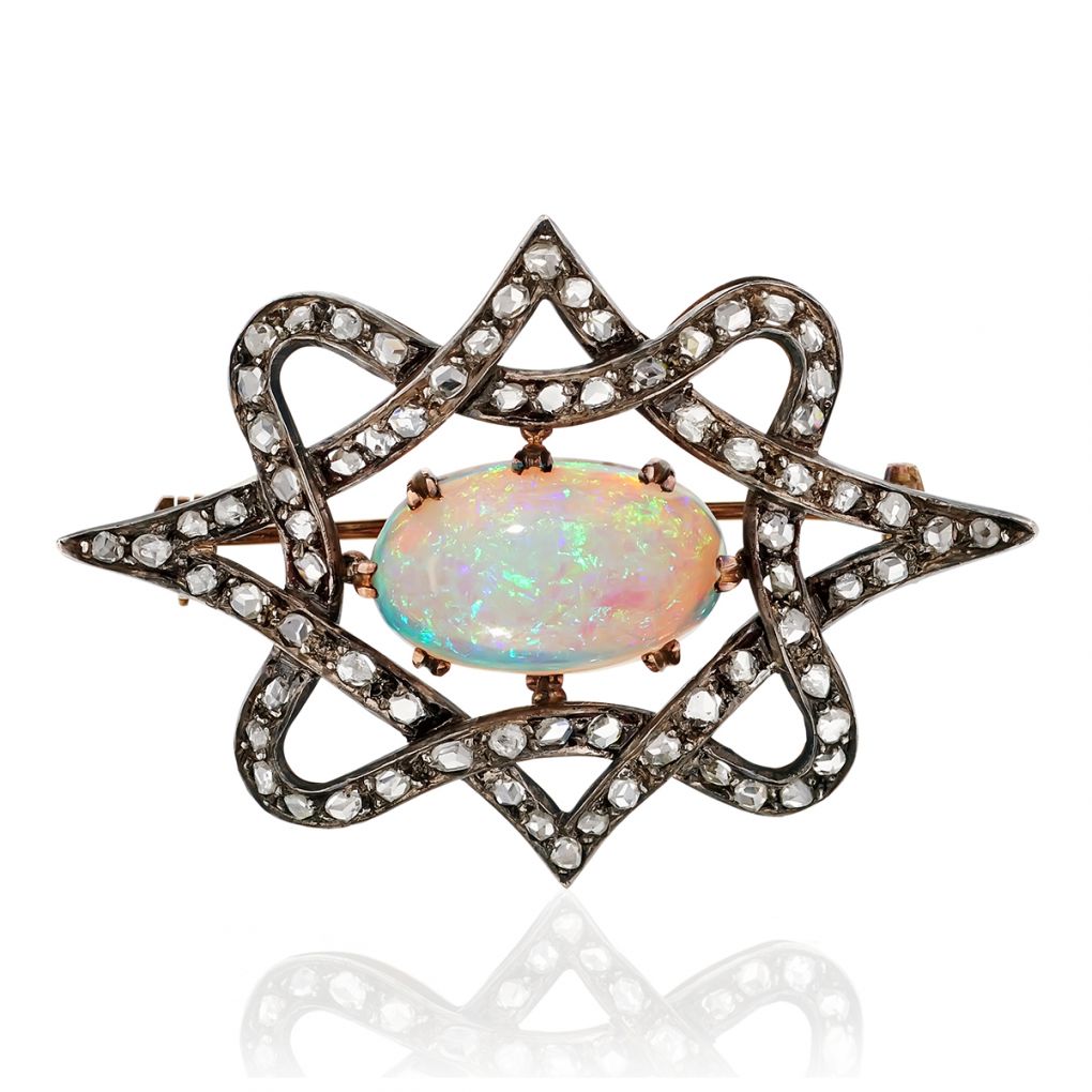 Vintage Opal Brooch Set in Silver and Rose Gold. Circa 1860
