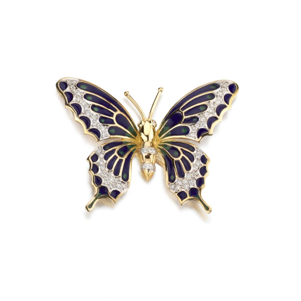 • Yellow Gold Enamel And Diamond Butterfly Brooch/Pendant