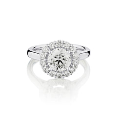 14kt White Gold Diamond Ring with Halo. 0.74 Brilliant Cut Diamond