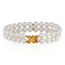 Ladies Triple Strand Pearl Necklace with 18kt Y/G Brooch / Clasp