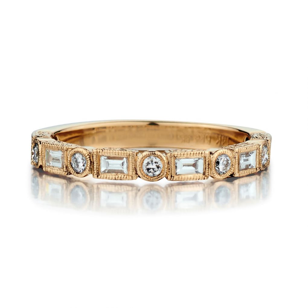 • 0.40 CT Total Baguette And Brilliant Cut Diamond Stackable YG Band
