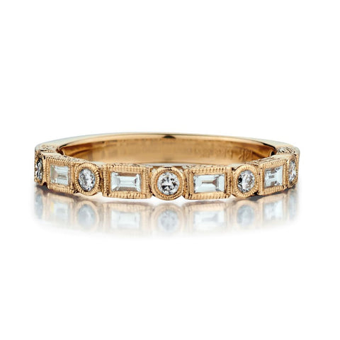 0.40 CT Total Baguette And Brilliant Cut Diamond Stackable YG Band