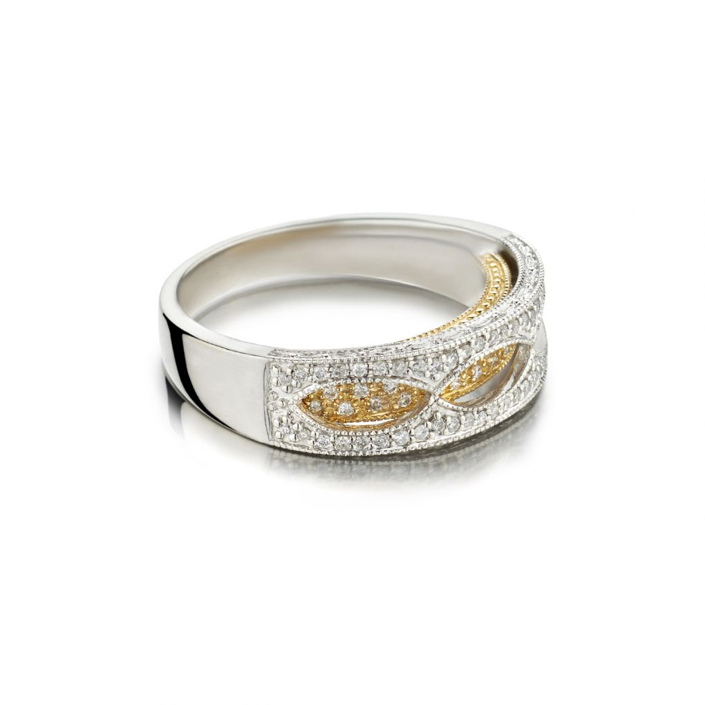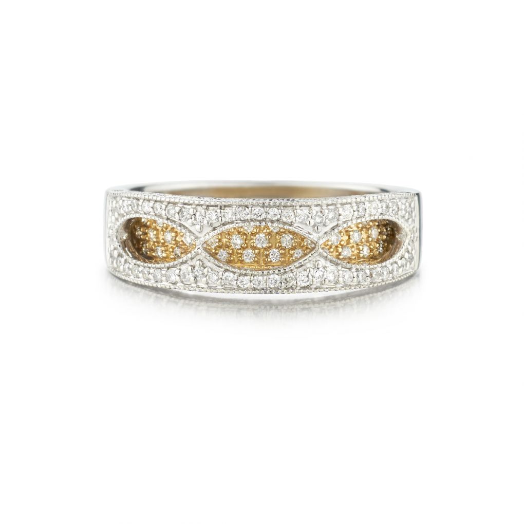 Ladies 14kt white and yellow gold diamond band set in white and yellow gold with approximately 0.50 carat total weight of Round Brilliant cut diamonds. Size 7 but can be resized. 6mm (w) x 4mm (h).