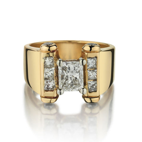 0.90 Carat Radiant Cut Diamond Yellow Gold Wide Ring