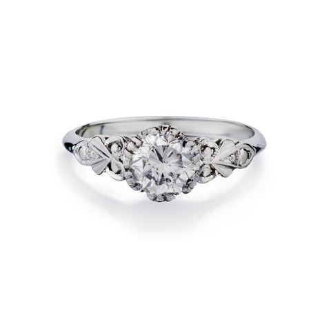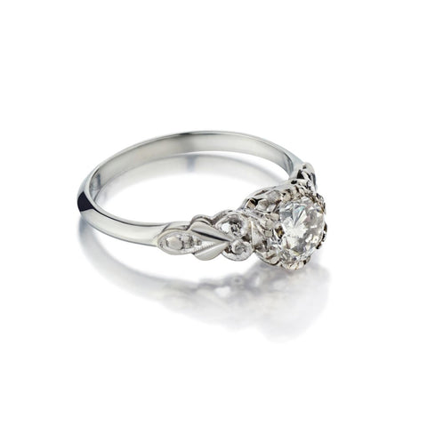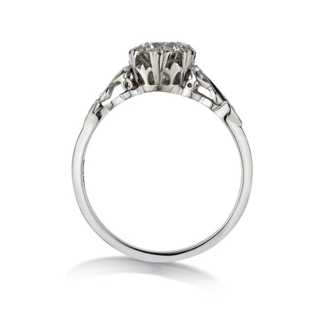 0.95 Carat Old European Cut Diamond White Gold Vintage Ring