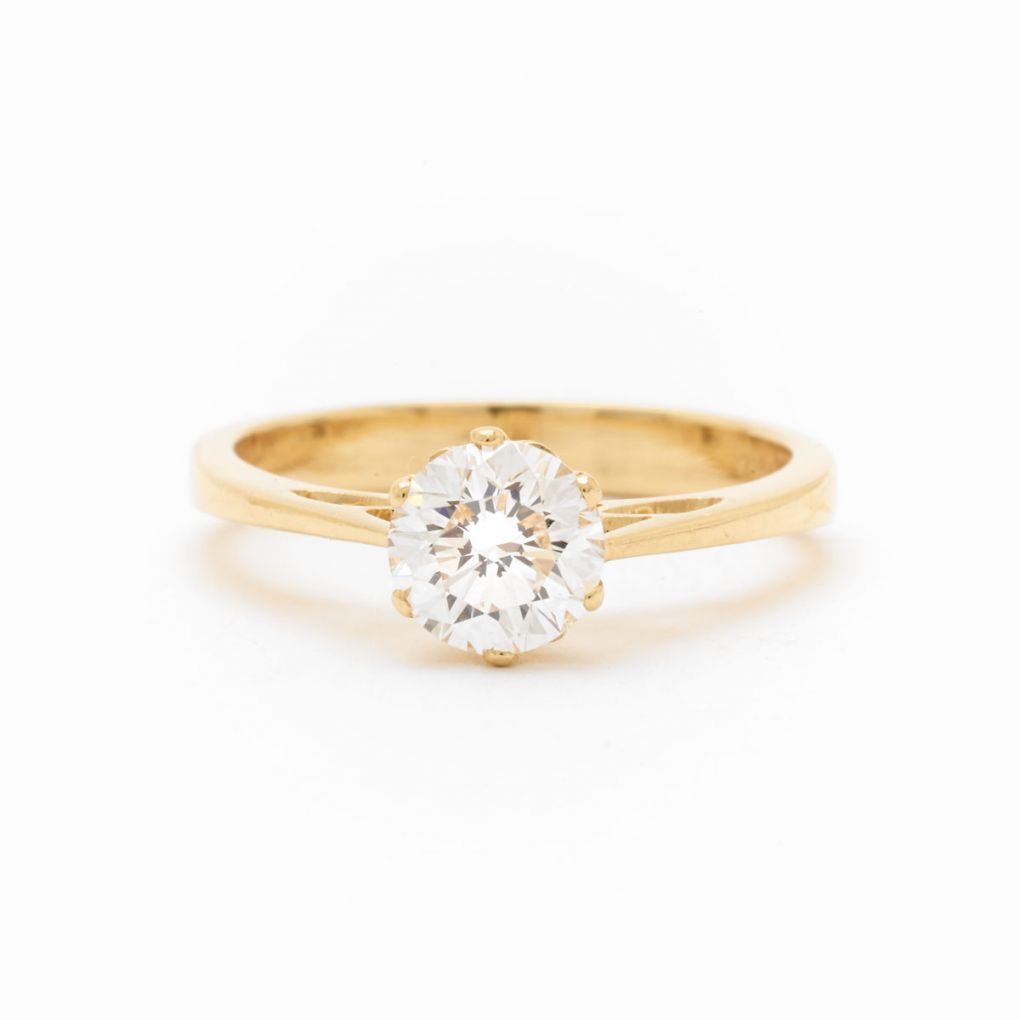 1.00 Carat Round Brilliant Cut Diamond Yellow Gold Ring