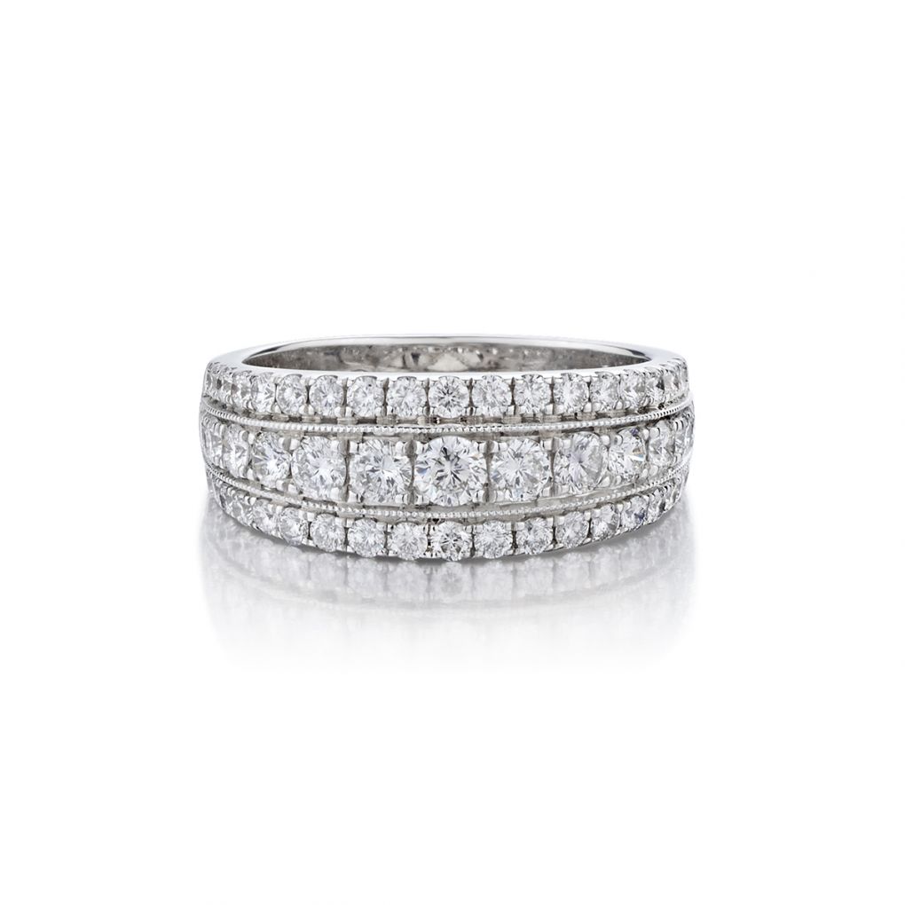 1.35 Carat Total Round Brilliant Cut Diamond Three Row Band