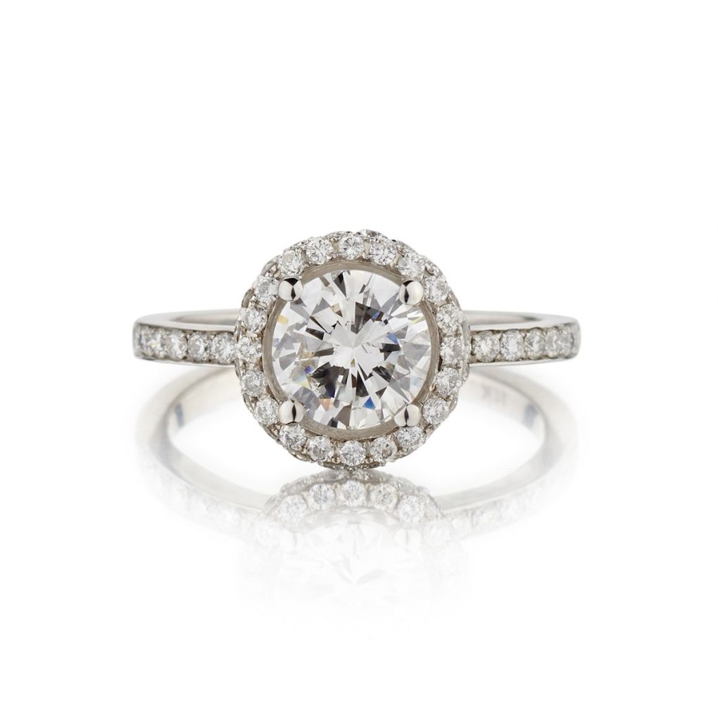 • 1.55 Carat Round Brilliant Cut Diamond Halo-Set WG Ring