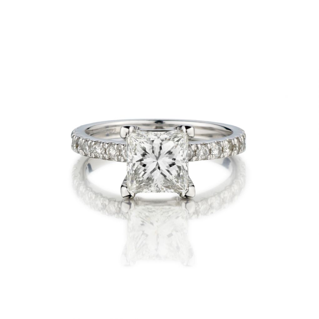 • 1.86 Carat Princess Cut Diamond White Gold Engagement Ring