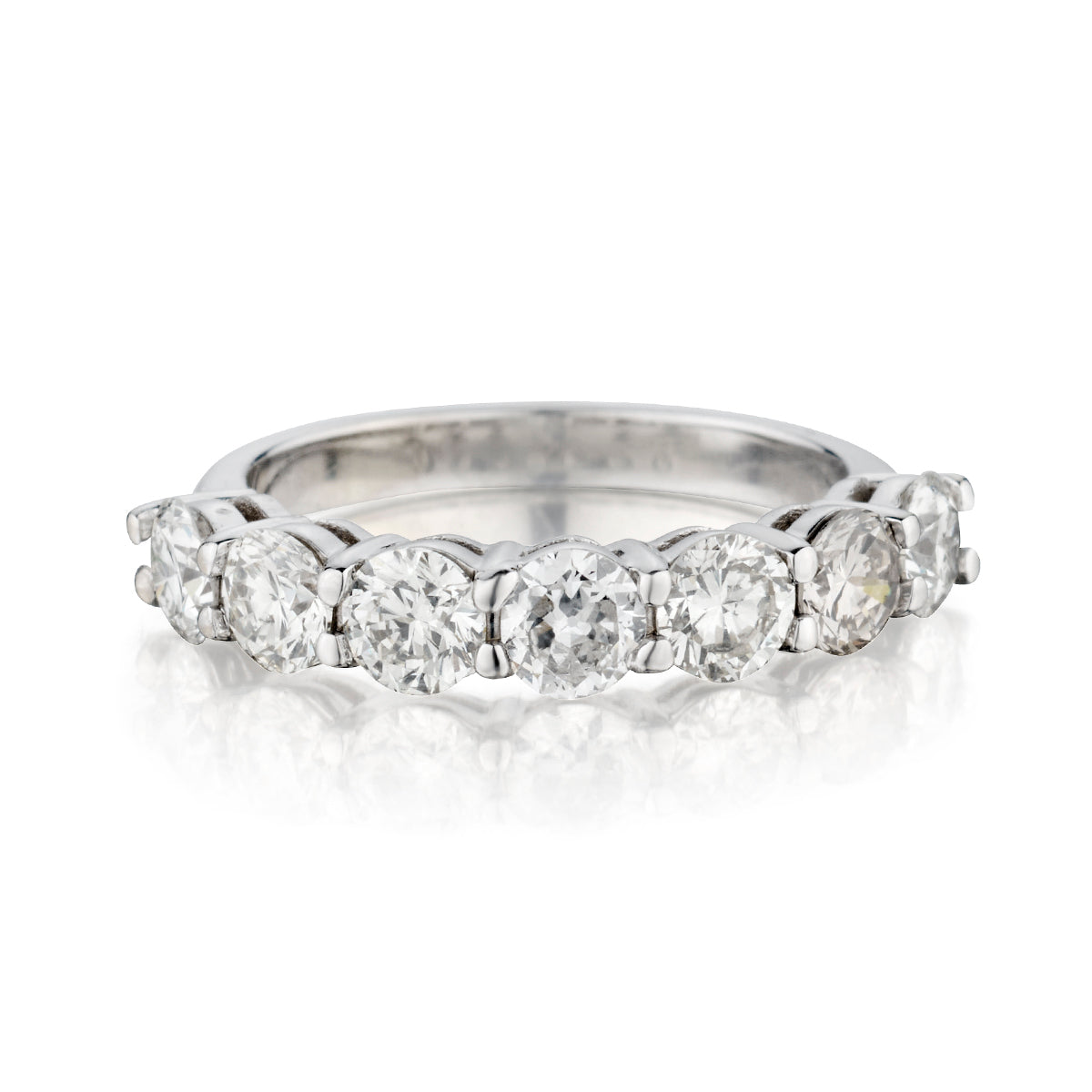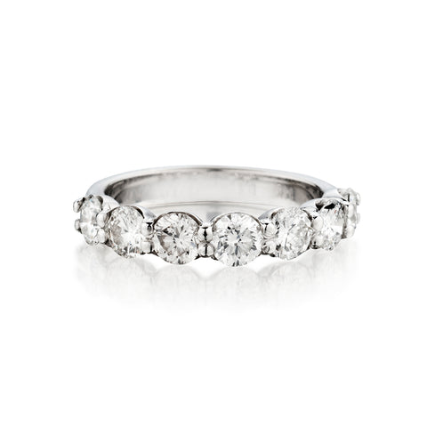 14kt white gold 7 stone diamond ring. This ring features 7 x 1.65 total carat weight of brilliant cut diamonds of (SI) in clarity and (H-I) in colour. Shared claw setting. Half way. Current finger size:6. This ring can be resized.