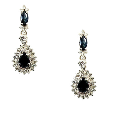 14kt White Gold Diamond and Blue Sapphire Earrings