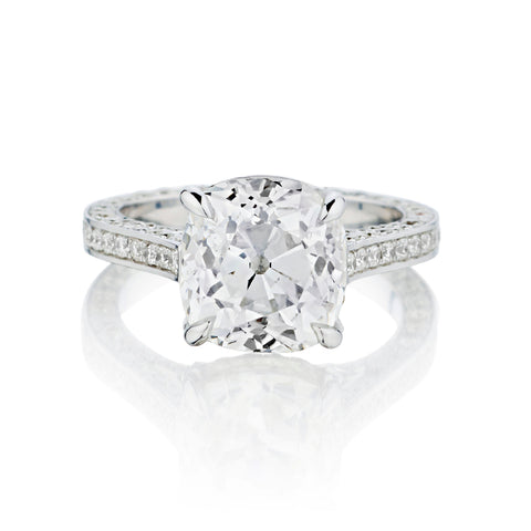 14kt White Gold Diamond Ring. 4.35 Handcut Natural Cushion Cut