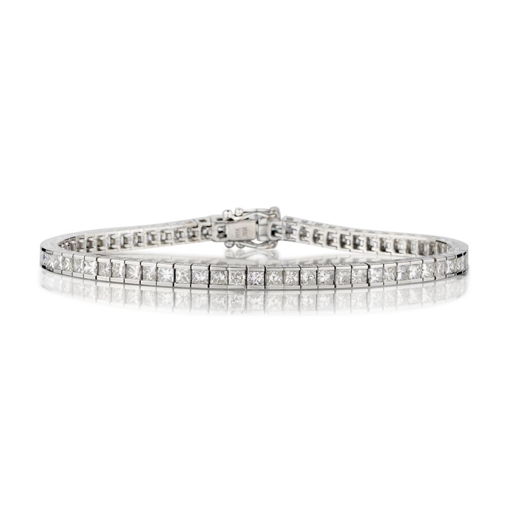 • 18kt w/g Princess Cut Diamond "Tennis Bracelet". 5.80ct Tw