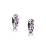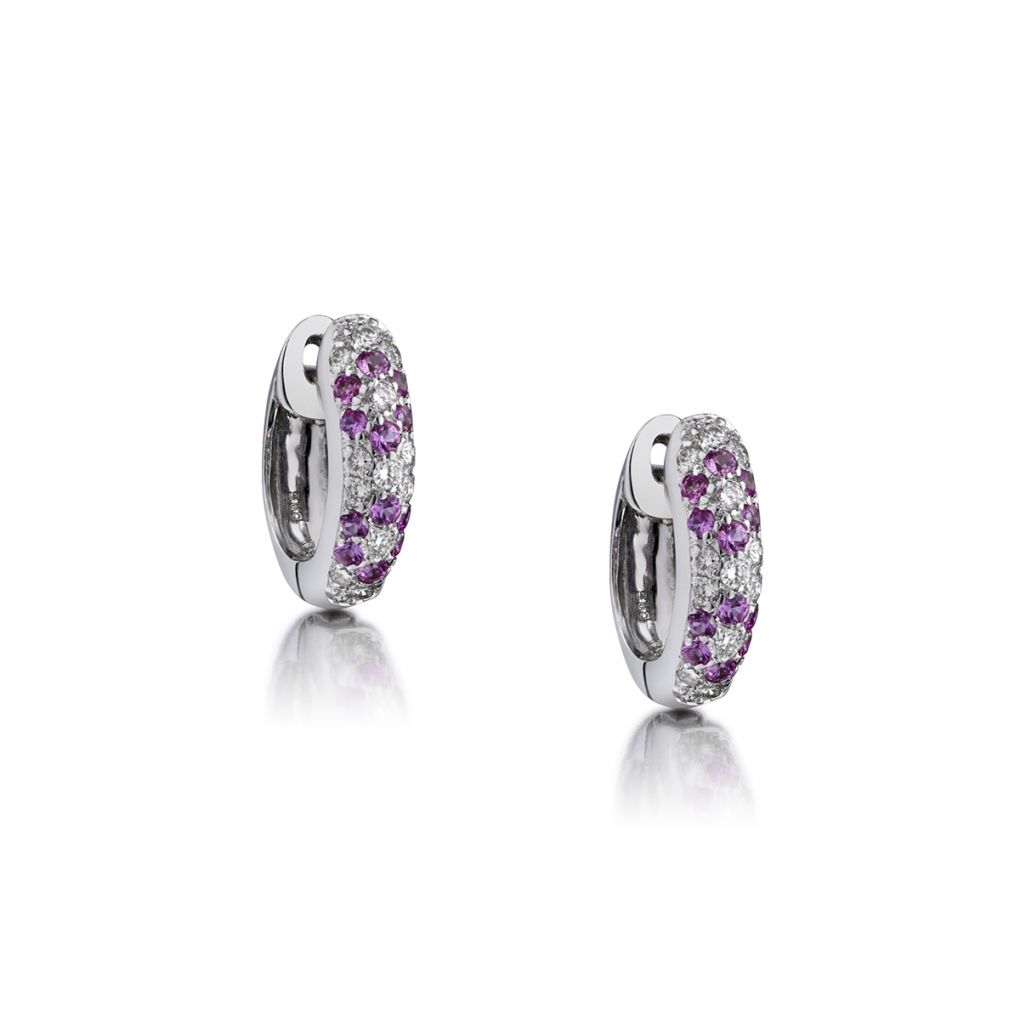 • 18KT White Gold Diamond And Pink Sapphire Huggie Hoop Earrings