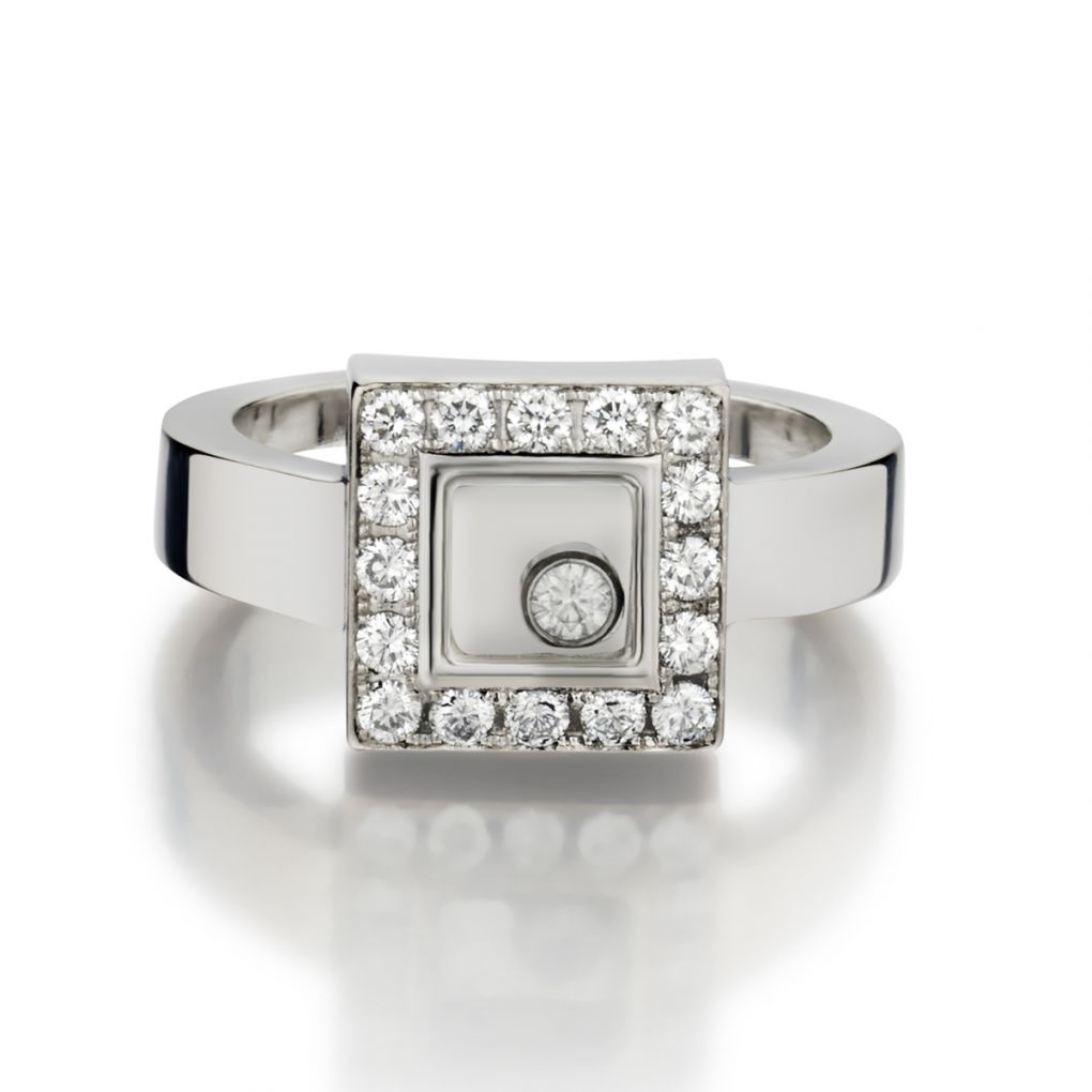 18KT White Gold Halo Floating Diamond Square-Shaped Ring