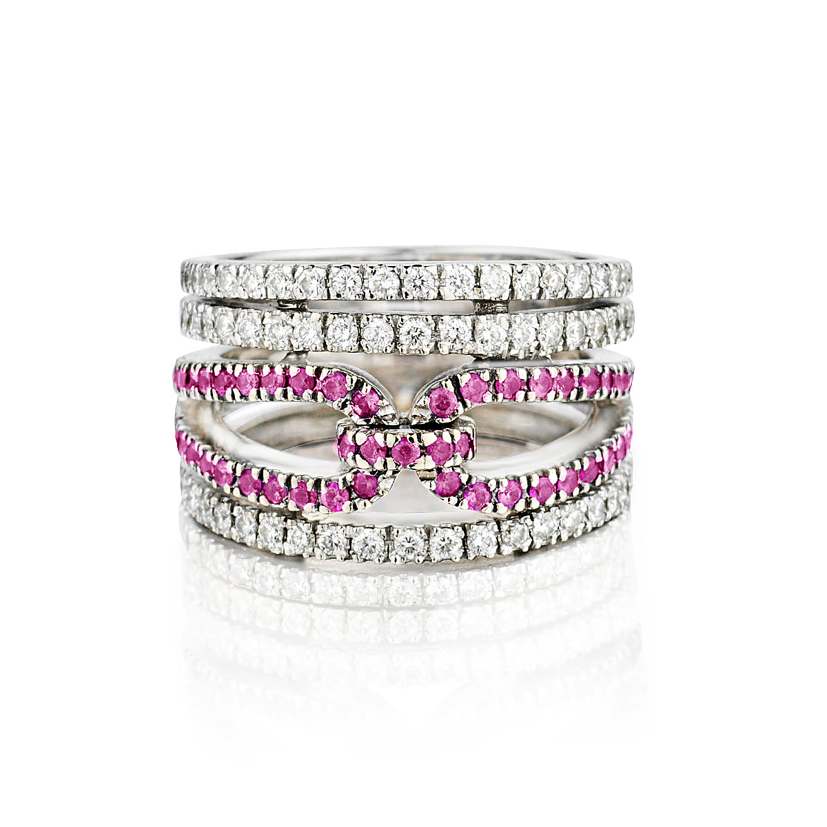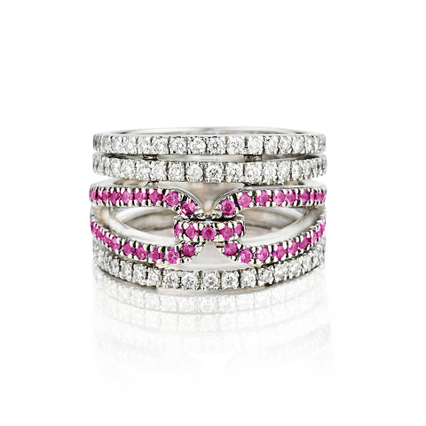 18kt White Gold Pink Tourmaline and Diamond Wide Band.