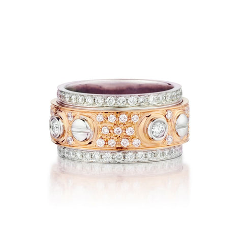 • 18kt Wide 2 tone Rose and White Gold Diamond Band. 1.60ct Tw
