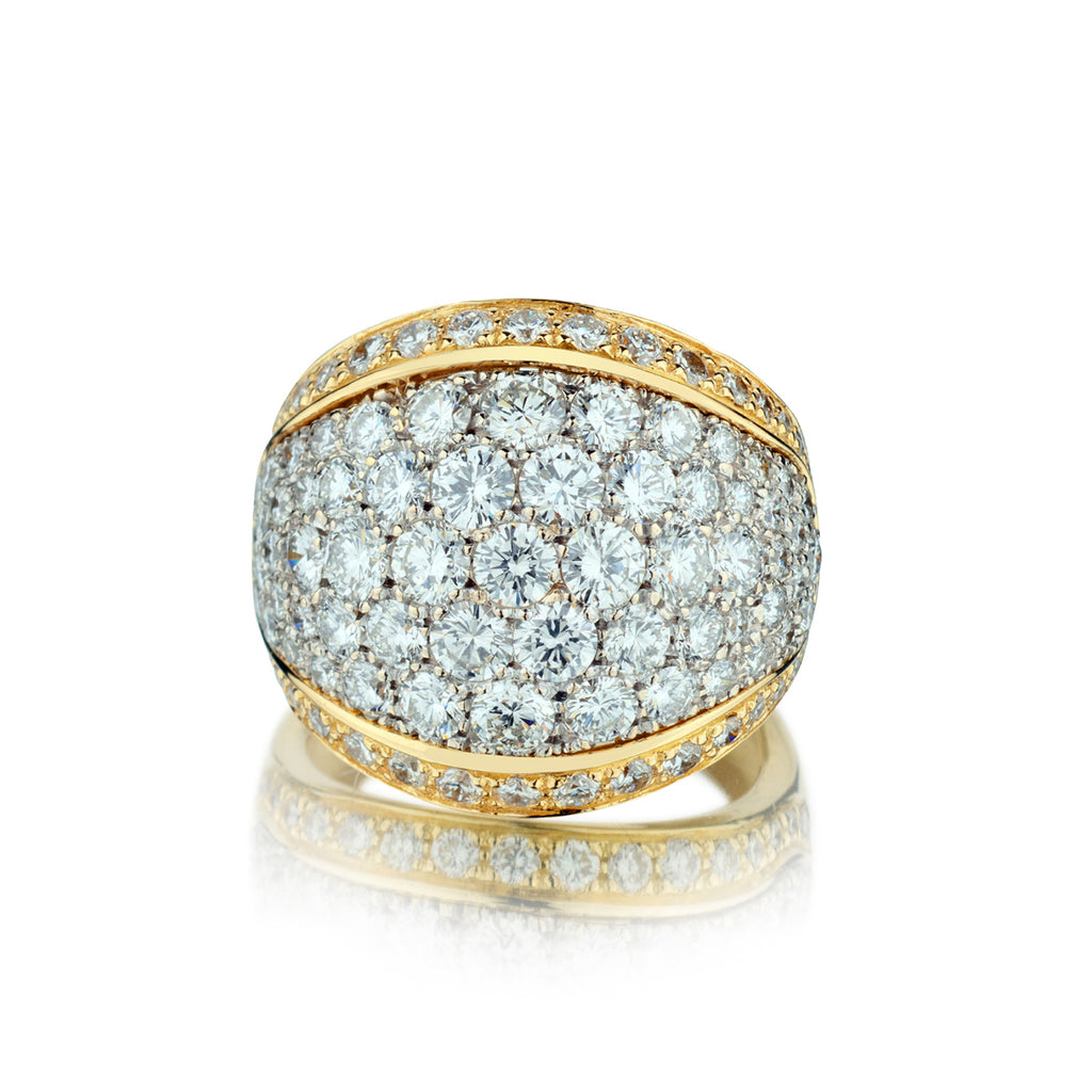 • 18kt Yellow and White Gold Domed Diamond Band. 3.48ct Tw