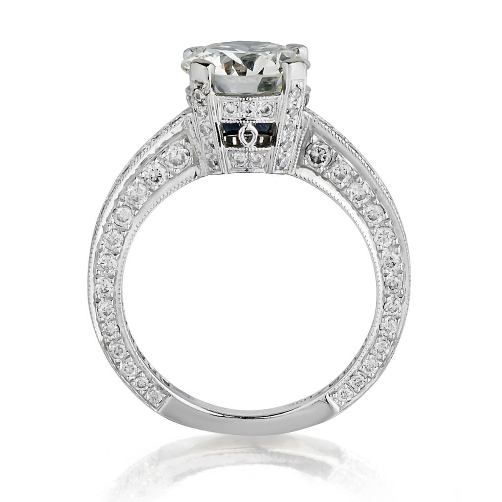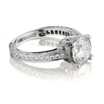 Ladies 14kt white gold diamond ring featuring a 2.01 carat Round Brilliant cut diamond of (VVS) in clarity and (K) in color. Further enhanced by 0.80 carat total weight of round brilliant cut diamonds going 3/4 way around. Size 5 1/2 but can be resized.