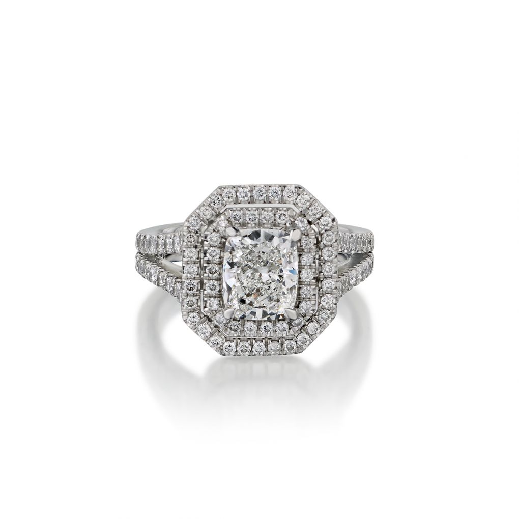 2.02 Carat Cushion Cut Double Halo Platinum Engagement Ring