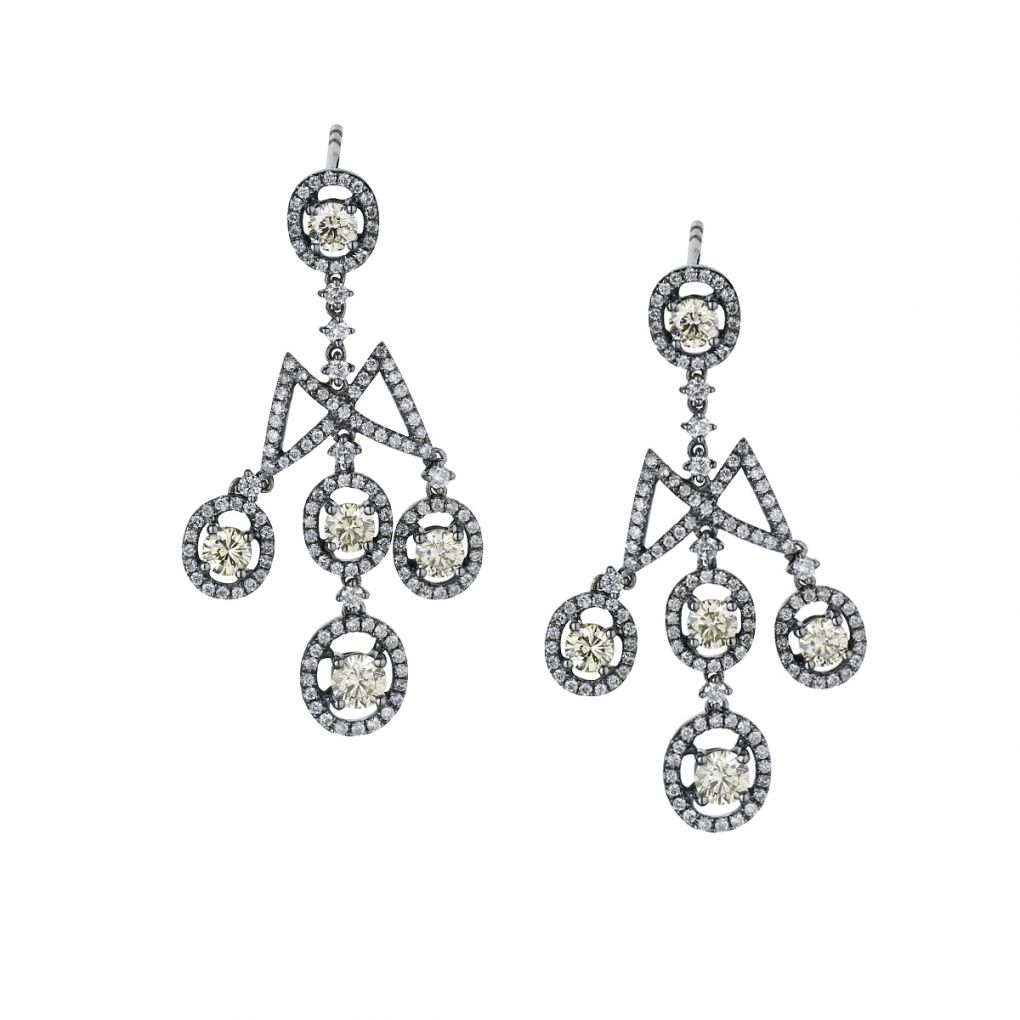 Ladies 18kt white gold antique chandelier drop earrings featuring 2.50 carat total weight of (VS-SI) in clarity and (G-H) in color. 39mm (l).