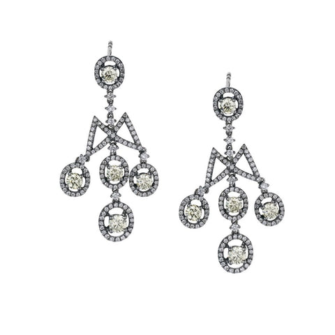 • 2.50 Carat Total Brilliant Cut Diamond Antique Chandelier Earrings