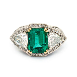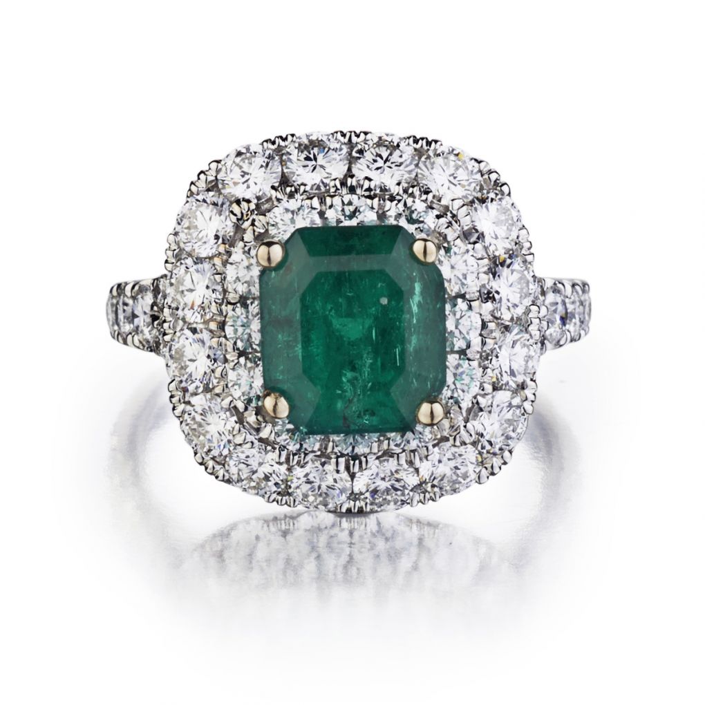 2.54CT Green Emerald & Diamond Double Halo Ring