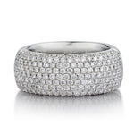 Ladies 18kt white gold pave-set diamond band featuring 2.60 carat total weight of Round Brilliant cut diamonds of (VS) in clarity and (G) in color. Currently a finger size 4-5 as it has an insert, but can be resized. 9mm wide. Diamonds going half way around.
