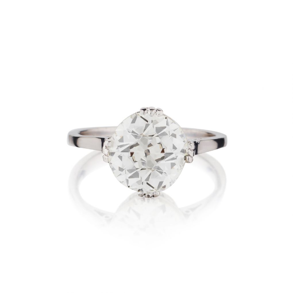 2.82 Carat Old-Mine Cut Diamond Platinum Solitaire Engagement Ring