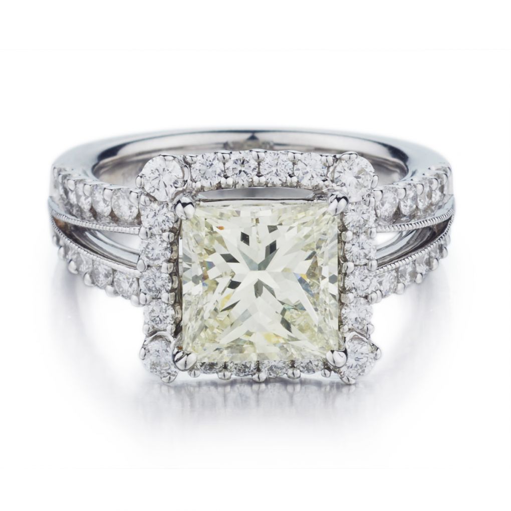 • 3.10 Carat Princess Cut Diamond Halo Split-Shank Ring