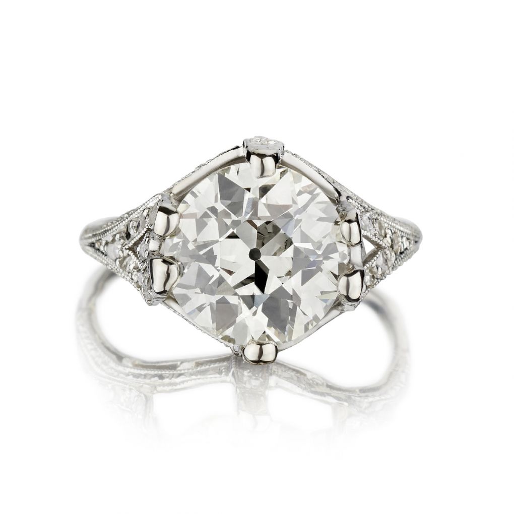 3.65 Carat Old-European Cut Diamond Art-Deco Platinum Ring