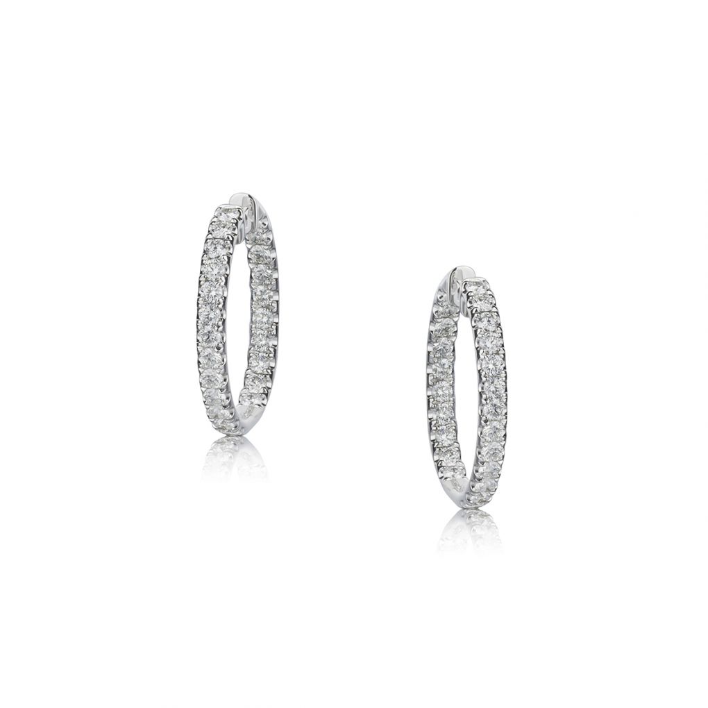 3.70 Carat Total Weight Round Brilliant Cut Diamond Hoop Earrings